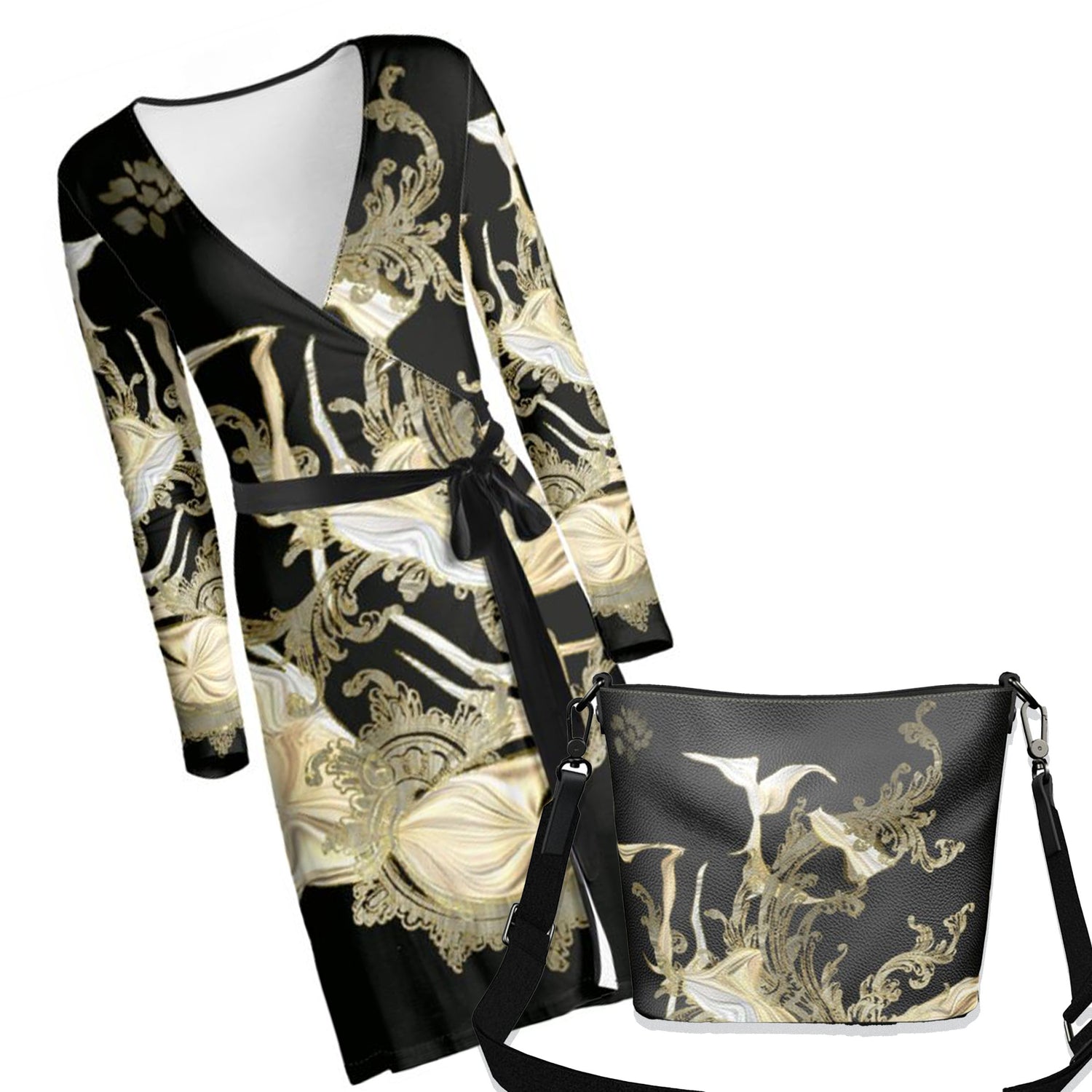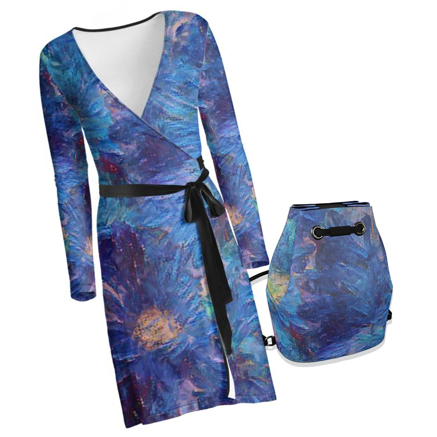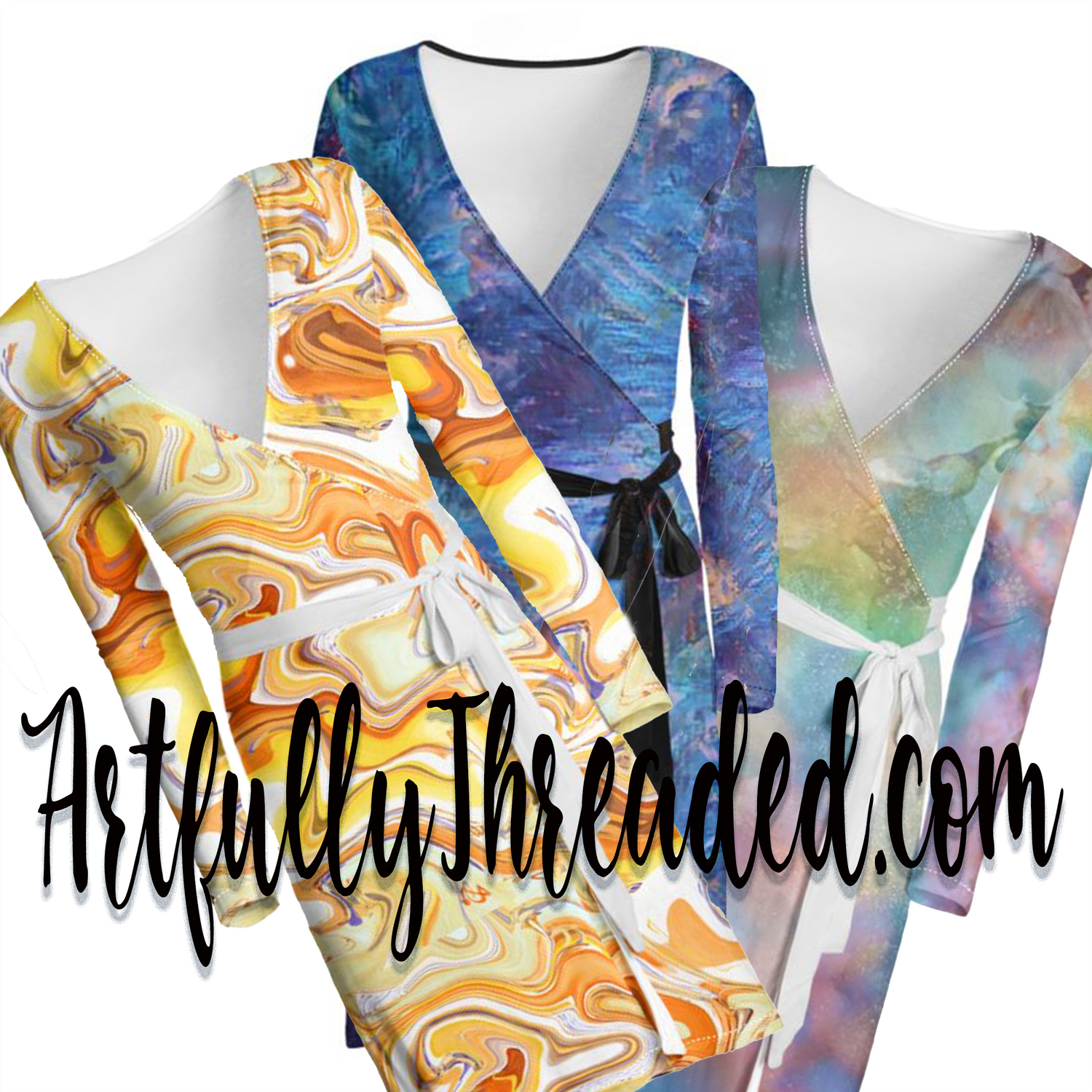 Simple wrap dresses in a variety of designs. Black or white stitching...