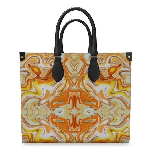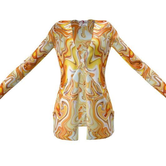 Bold and bright oranges and yellows in a digitally created fluid design creates the perfect piece of gorgeous wearable art.  Brighten up even the dreariest of days and turn heads with these items!