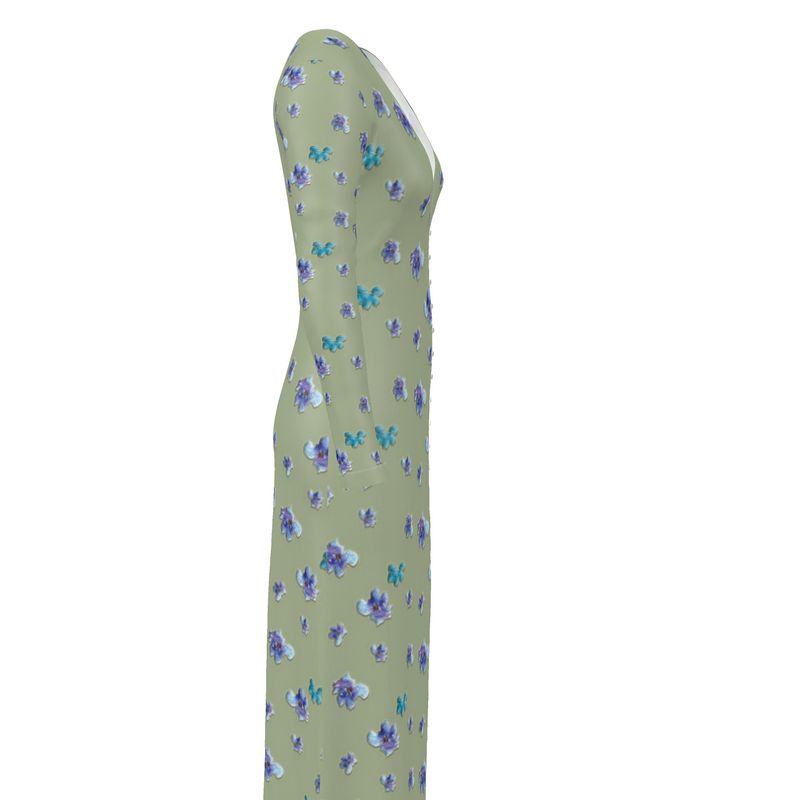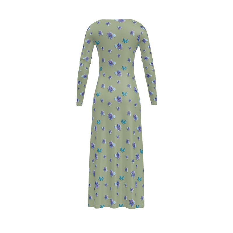 This long cardigan / button dress has a subtle and elegant design combining purple and blue flowers on a pale green background. The lightweight, breathable fabric is perfect for comfortable everyday wear. The cardigan's wooden buttons provide a secure closure, while its generous fit ensures easy movement and maximum comfort. Add a bit of timeless color and style to your wardrobe with this gorgeous dress.