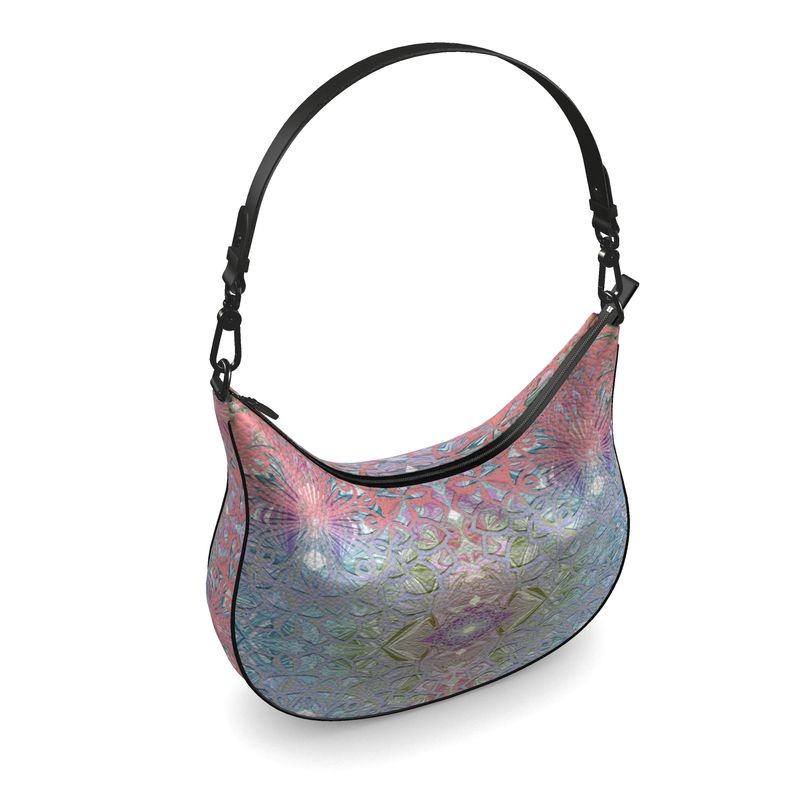 This stylish hobo bag is made with premium Nappa leather and features a classic curved shape. Its eye-catching design incorporates delicate pastel tones and digitally-designed geometric shapes, making it perfect for adding a touch of chicness to your wardrobe.