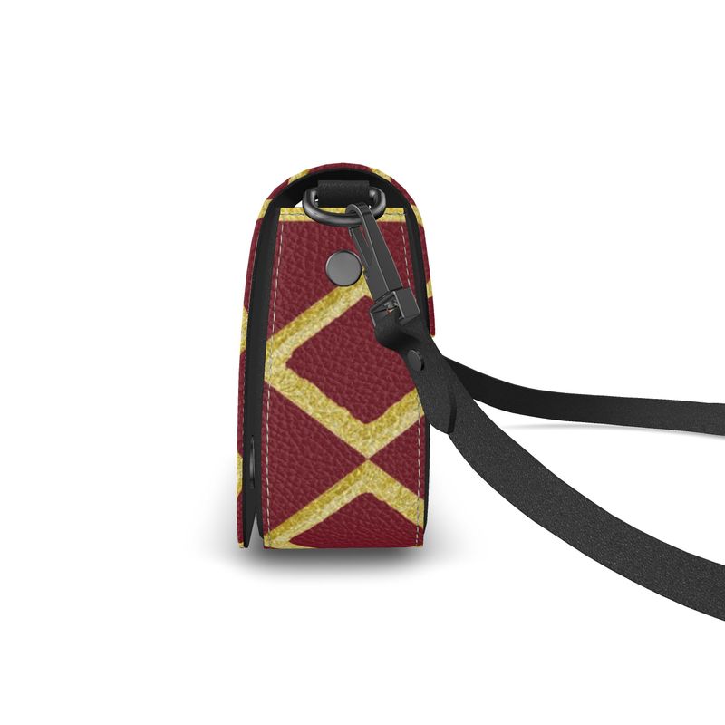 Gold against red is a stunning combination in this Dress Me Up design.  This foldover box bag features your choice of a smooth or bubble Nappa leather body with a faux suede inner lining. Magnetic poppers keep the bag securely shut and comes with either a removable strap or non-removable strap.
