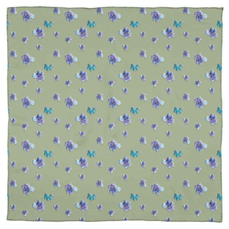 Purple and blue flowers dance against a green background in the A Bit of Purple design, perfect for this scarf that can also be used as a wrap or shawl in a variety of sizes. All fabric options are lightweight: chiffon, silk sensation poly, soft muslin poly or real Georgette silk. Cut and sewn to order.