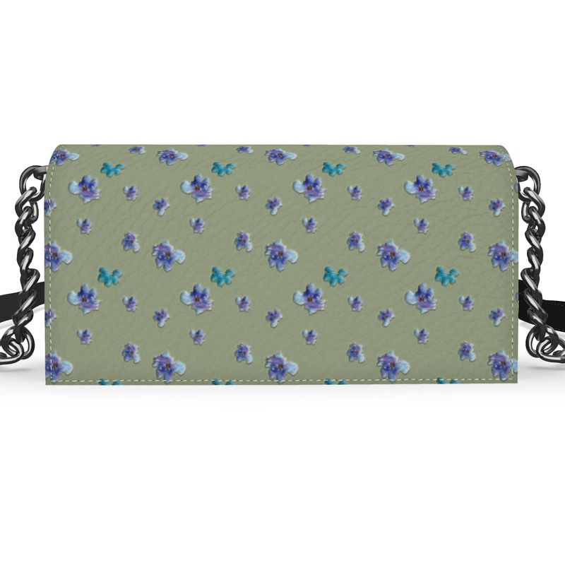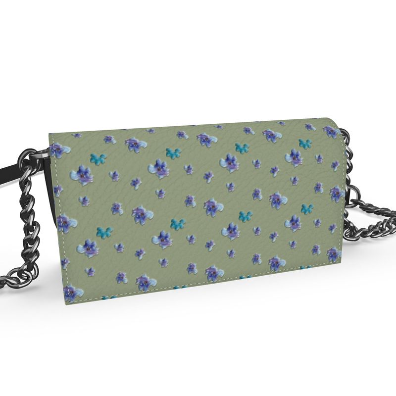 This Nappa leather evening bag is an exquisite accessory to add to any outfit. The 'Kenway' features a detachable strap to easily switch between a clutch bag and an elegant shoulder bag. An eye-catching purple and blue floral pattern on a green background, combined with a faux suede inner lining, gives a pop of sophistication to a night out. A single internal pocket allows for secure storage of small items. Perfect for spring.